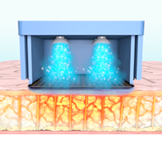 고주파 열에너지가 진피층 깊숙히 침투하고 통증을 줄이는 진동이 계속됩니다.
